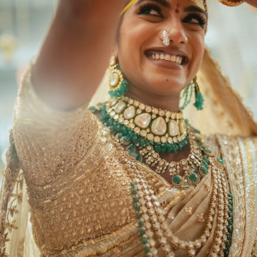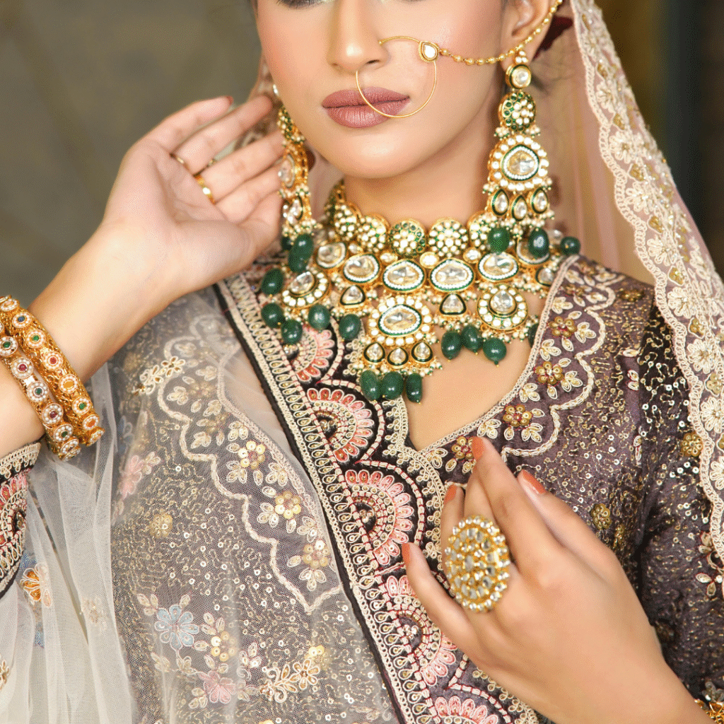 Today’s bridal jewellery blends classic charm with modern sophistication. Lightweight designs with diamonds, pearls, and rose-gold settings are perfect for brides who want comfort without losing grandeur. Every necklace, bracelet, and earring is crafted to sparkle under the wedding lights, making the bride the center of attention. More than adornment, these pieces celebrate individuality, confidence, and everlasting beauty.Bridal jewellery is the soul of a wedding look, adding timeless beauty and charm. Crafted with precision, each piece tells a story of tradition, love, and grace. Whether it’s a dazzling diamond set, a regal kundan necklace, or intricate gold bangles, bridal jewellery reflects the bride’s personality and culture. It enhances her attire, making her glow with elegance and pride. Passed down through generations or chosen specially for the big day, these ornaments are not just jewellery—they are heirlooms that preserve memories and celebrate new beginnings.